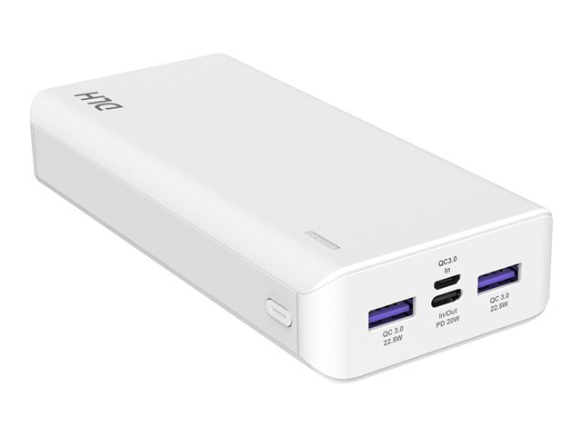 20000 mAh - 20 Watt - 4.5 A - PD, Quick Charge 3.0 - 3 connecteurs de sortie - sur le câble : USB, USB-C - blanc