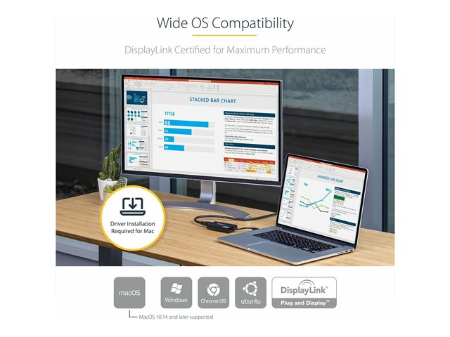 StarTech.com Adaptateur USB 3.0 vers HDMI, 4K 30Hz Ultra HD, certifié DisplayLink, convertisseur d'adaptateur d'affichage USB Type-A vers HDMI pour moniteur, vidéo externe et carte graphique, Mac et Windows