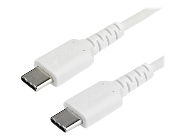 Cordon de Chargement USB 2.0 Type C vers USB-C pour PC Portable - Gaine TPE Fibre Aramide M/M 60W Blanc - Samsung S10 S20 iPad Pro MS Surface (RUSB2CC1MW) - Câble USB - 24 pin USB-C (M) droit pour 24 pin USB-C (M) droit - Thunderbolt 3 / USB 2.0 - 1 m - blanc