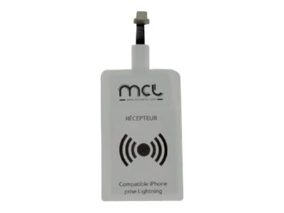 Adaptateur à induction pour iPhone muni d'une prise Lightning. L'adaptateur peut être plié pour se loger sous une coque de protection.