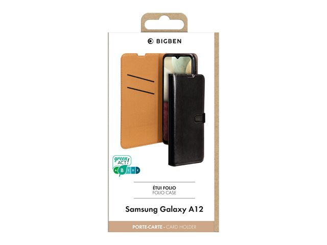Étui à rabat pour téléphone portable - synthétique - noir - pour Samsung Galaxy A12