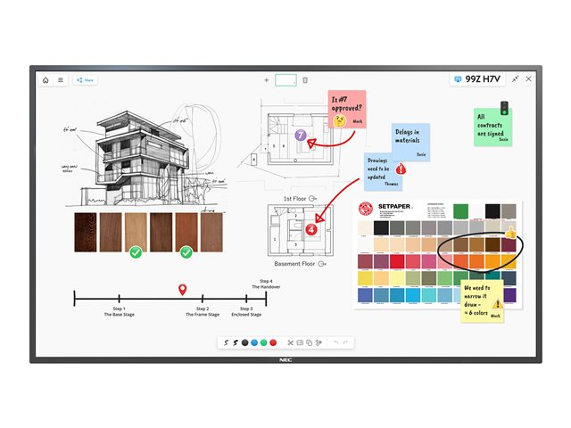 Les espaces de réunion modernes stimulent la demande de technologie tactile sophistiquée au design innovant. Au service des sessions interactives, le tableau tactile NEC InGlass accompagné du stylo passif réactif engendre une écriture supérieure similaire à celle sur le papier avec une latence minime mais sur une toile numérique. Affichant un design au cadre affiné, la technologie s'intègre avec fluidité dans un stylisme d'intérieur moderne.