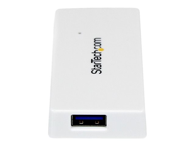 Le hub portable SuperSpeed Mini USB 3.0 4 ports ST4300MINU3W (blanc) vous permet d'étendre vos capacités USB en transformant un port USB 3.0 en quatre ports USB 3.0 externes. Sa conception intégrée en fait l'accessoire idéal pour votre ordinateur portable Mac ou PC ou votre ordinateur Ultrabook .