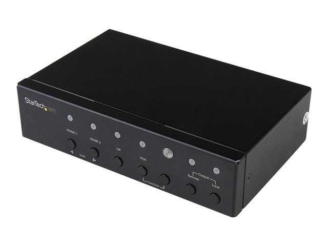 Cet extendeur HDBaseT intègre un commutateur convertisseur. Vous pouvez ainsi connecter deux sources HDMI ainsi qu'une source vidéo VGA et DisplayPort au même écran HDMI à distance sans recourir à des adaptateurs ou scalers supplémentaires ou à un commutateur vidéo séparé.