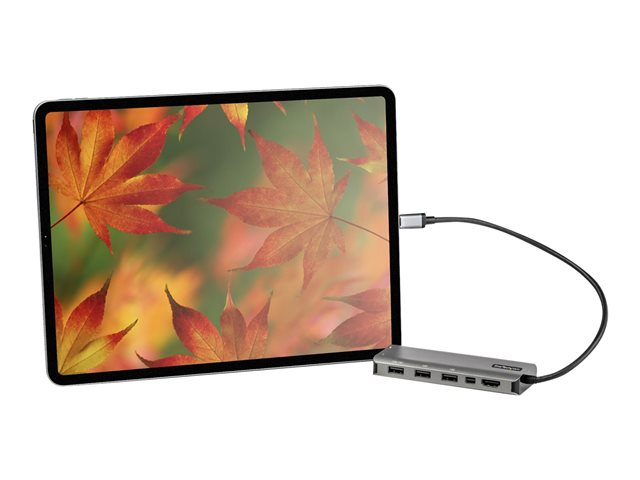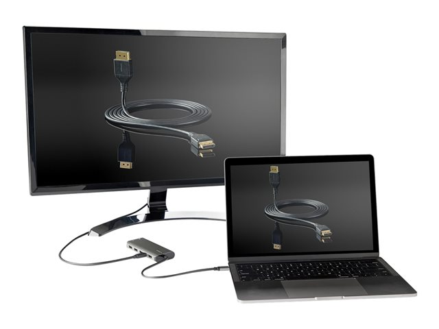 Cet adaptateur multiport USB-C avec DP 1.4 Alt Mode prenant en charge HDMI 4K 60 Hz et Mini DisplayPort transforme votre ordinateur MacBook Pro, Dell XPS ou tout autre ordinateur portable ou tablette USB-C en poste de travail, où que vous soyez. L'adaptateur multiport USB Type-C offre une sortie vidéo 4K HDMI ou Mini DP, trois ports USB 3.2 Gen 2 Type-A (10 Gbit/s) dont un port de charge BC 1.2 et un port USB-C (10 Gbit/s), le tout via une seule connexion au port USB-C ou Thunderbolt 3 de votre ordinateur portable. De plus, il offre une charge avancée grâce à l'alimentation USB Power Delivery 3.0 et un câble hôte extra-long de 30 cm pour une portée étendue et une plus grande souplesse d'installation.