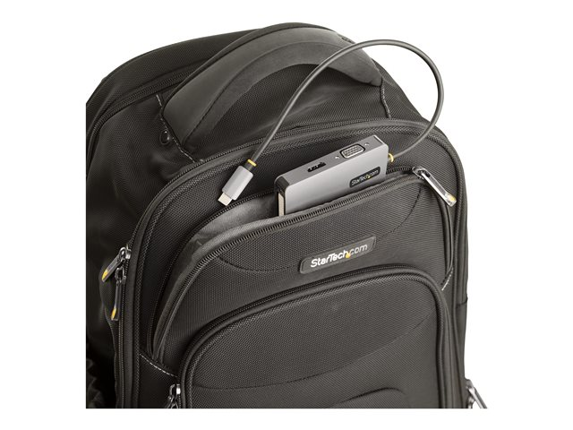 Cet adaptateur vidéo multiport USB-C constitue une solution durable et portable pour connecter votre périphérique USB Type-C à un écran n HDMI, DVI ou VGA.