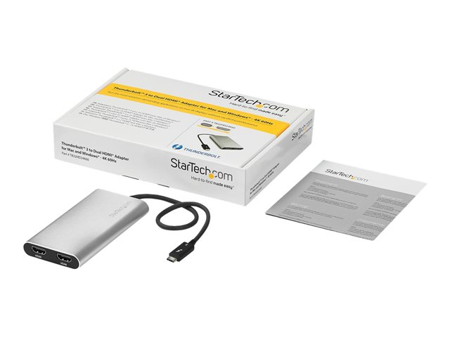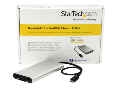 StarTech.com Adaptateur Thunderbolt 3 vers double HDMI - Compatible Windows et Mac - 4K 60 Hz (TB32HD24K60) - Câble adaptateur - 24 pin USB-C mâle pour HDMI femelle - 28.4 m - argent - actif, support 4K60Hz (4096 x 2160) - pour P/N: TB33A1C TB32HD24K60