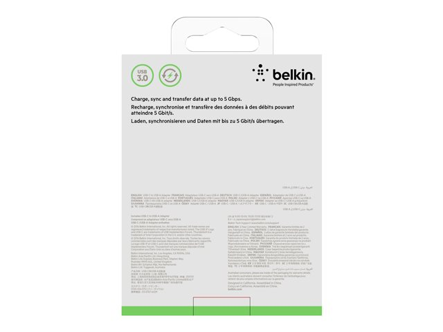 Belkin 3.0 USB-C to USB-A Adapter - Adaptateur USB - 24 pin USB-C (M) reversible pour USB type A (F) - USB 3.0 - 3 A - noir