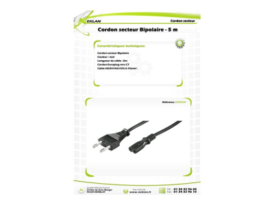 Neklan Bipolar - Câble d'alimentation - Europlug (M) pour power IEC 60320 C7 - 5 m - noir 2090939