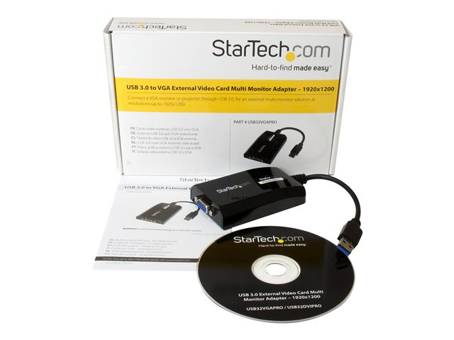 StarTech.com Adaptateur vidéo multi-écrans USB 3.0 vers VGA pour Mac et PC - Carte graphique externe - 1920x1200 / 1080p - Adaptateur USB / VGA - USB type A (M) pour HD-15 (VGA) (F) - USB 3.0 - 25.5 m - support 1920 x 1200 (WUXGA) - noir - pour P/N: MXT101MM