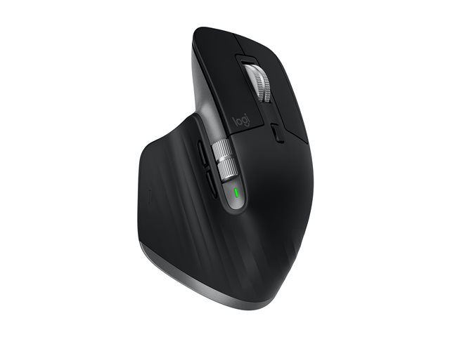 Logitech Darkfield Laser Tracking, fonction gestuelle, Logitech Flow, batterie rechargeable, repose-pouce, roue MagSpeed, DPI personnalisable, molette, technologie Quiet Clicks