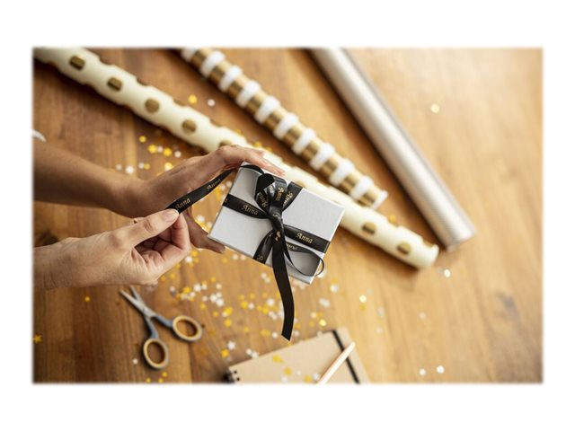 Lors d'occasions spéciales, utilisez le ruban TZe-R334 avec votre étiqueteuse P-touch pour adresser vos vœux aux personnes qui vous sont chères.  Laissez libre cours à vos talents et personnalisez vos cadeaux, vos cartes et vos créations avec le ruban tissu TZe-R334 Brother original.