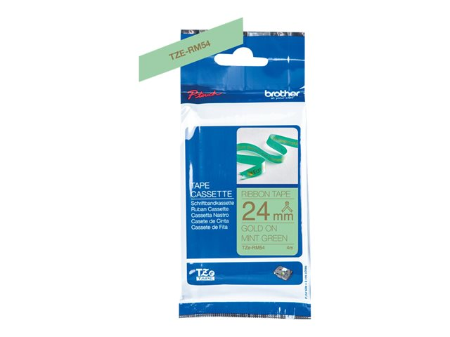 Brother TZe-RM54 - Satin - or sur vert menthe - Rouleau (2,4 cm x 4 m) 1 cassette(s) bande de ruban - pour Brother PT-D600; P-Touch PT-3600, D600, D800, E550, P750, P900, P950; P-Touch EDGE PT-P750