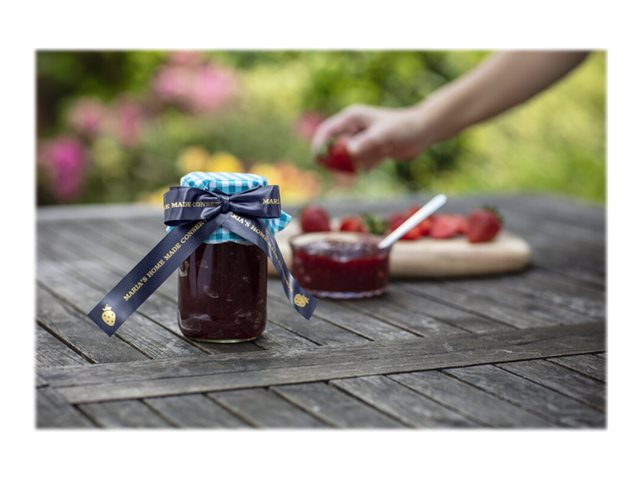 Lors d'occasions spéciales, utilisez le ruban TZe-RN54 avec votre étiqueteuse P-touch pour adresser vos vœux aux personnes qui vous sont chères.  Laissez libre cours à vos talents et personnalisez vos cadeaux, vos cartes et vos créations avec le ruban tissu TZe-RN54 Brother original.