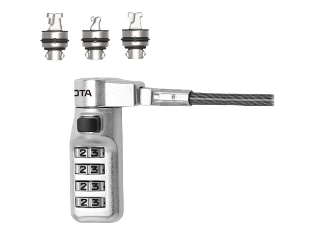 Parfait pour les sociétés qui travaillent avec différents appareils. Grâce au cadenas de sécurité à combinaison avec tête interchangeable (T-Lock, Wedge et Nano), votre cadenas correspond à tous types d'appareils équipés d'un port antivol. Simple, pratique et efficace. Ce verrou est utilisé dans un système de verrous supérieur qui permet l'accès aux utilisateurs et à l'administrateur du système grâce à un code prédéfini. Ce code prédéfini est programmé dans le verrou avant l'envoi pour que l'utilisateur puisse travailler immédiatement sans avoir à définir une nouvelle combinaison.