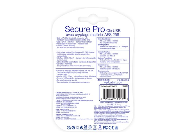 Verbatim Store 'n' Go Secure Pro - Clé USB - chiffré - 64 Go - USB 3.0 98666