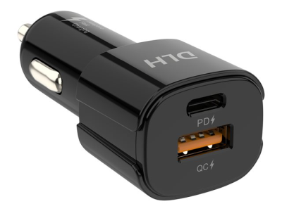 DLH - Adaptateur d'alimentation pour voiture - 38 Watt - FC - 2 connecteurs de sortie (USB type A, 24 pin USB-C)