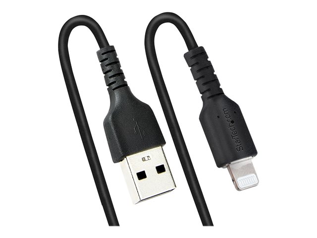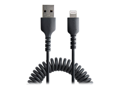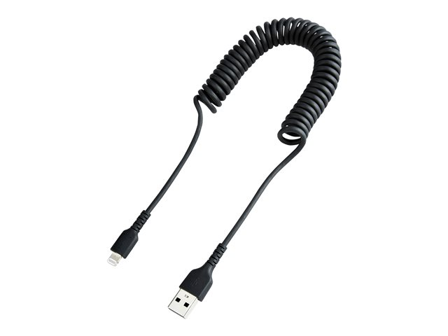 StarTech.com Câble USB vers Lightning de 1m - Certifié Mfi - Adaptateur USB Lightning Noir, Gaine en TPE - Cordon Chargeur Iphone/Lightning Spiralé en Fibre Aramide Très Résistant (RUSB2ALT1MBC) - Câble Lightning - USB mâle pour Lightning mâle - 1 m - noir - bobiné