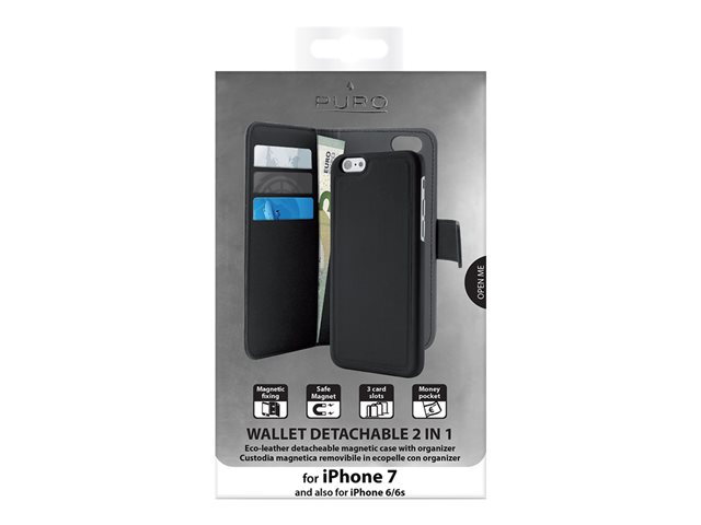 Puro 2in1 - Étui à rabat pour téléphone portable - cuir écologique - noir - pour Apple iPhone 6, 6s, 7, 8