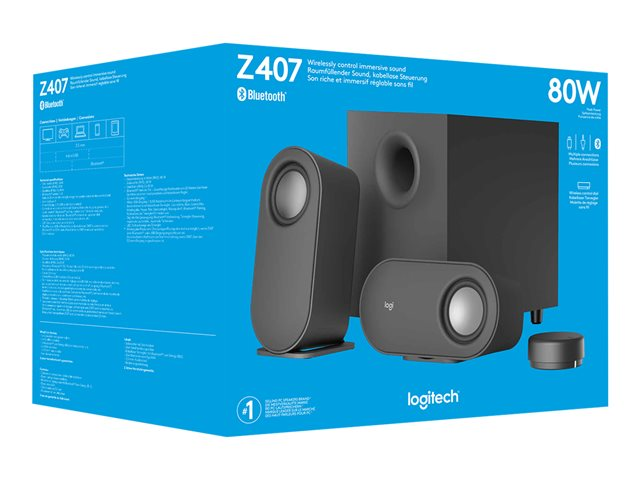 Logitech Z407 - Android Edition - système de haut-parleur - pour PC - Canal 2.1 - sans fil - Bluetooth - USB - 40 Watt (Totale) - gris graphite