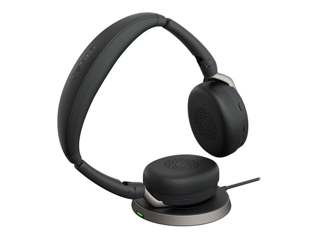 Jabra Evolve2 65 Flex UC Stereo - Micro-casque - sur-oreille - Bluetooth - sans fil - Suppresseur de bruit actif - USB-A - noir - avec socle de recharge sans fil - Optimisé pour la CU 26699-989-989