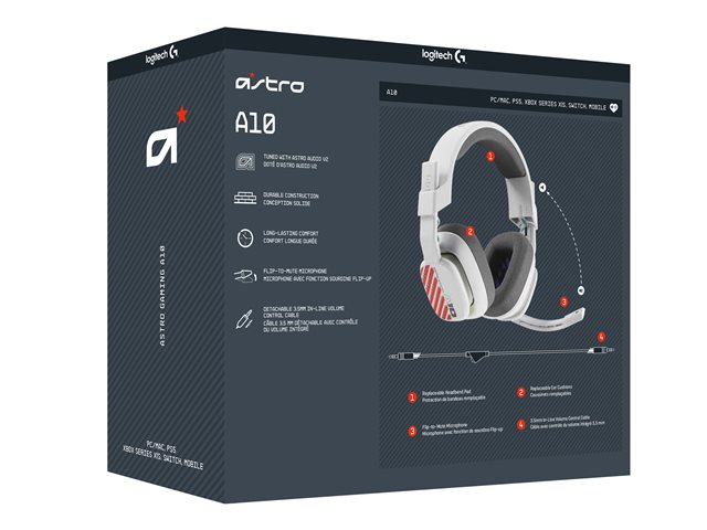 ASTRO Gaming A10 Gen 2 - Micro-casque - circum-aural - filaire - jack 3,5mm - blanc