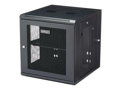 StarTech.com 12U 19" Wall Mount Network Cabinet, 20" Deep 4 Post Hinged Locking IT Computer Equipment Enclosure with Shelf, Flexible Vented Switch Depth Data Rack Cisco 3850, 2960 Series - 12U Vented Cabinet (RK1224WALHM) - Armoire de rack - montable sur mur - noir - 12U