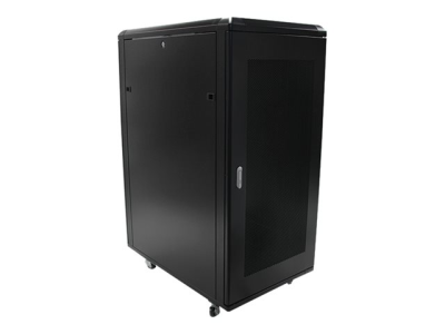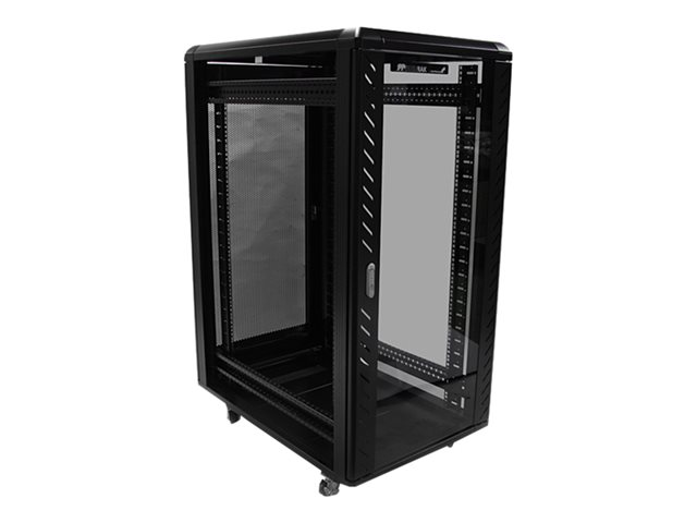 Ce rack de serveur fournit un espace de stockage de 25 unités de rack dans une armoire sécurisée et élégante, pour le stockage d'appareils 19" montables en rack, conformes à la norme EIA-310, tels que les serveurs Dell, HP et IBM ainsi que des équipements de télécommunication et audio/vidéo. Le rack constitue une solide solution de stockage qui prend en charge une capacité de charge totale de 800 kg .