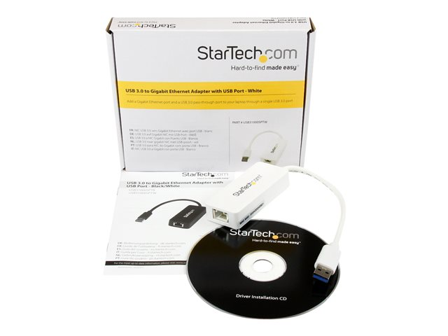 StarTech.com Adaptateur réseau USB 3.0 vers Gigabit Ethernet - Convertisseur USB vers RJ45 avec 1 port USB intégré - M/F - Blanc - Adaptateur réseau - USB 3.0 - Gigabit Ethernet - blanc