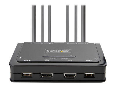StarTech.com 2-Port Dual-Monitor HDMI Cable KVM Switch, 4K 60Hz, Compact KVM with 5ft/1.5m USB-A/HDMI/Audio Integrated Cables, Bus Powered - Remote Push Button/Hotkey Switching (C2-DH46-UA2-CBL-KVM) - Commutateur écran-clavier-souris/audio/USB - compact - 2 x KVM / audio / USB - 1 utilisateur local - de bureau C2-DH46-UA2-CBL-KVM