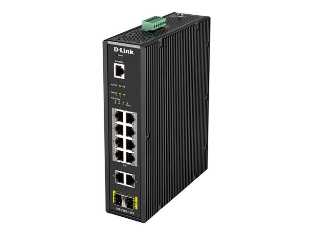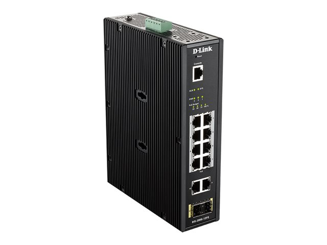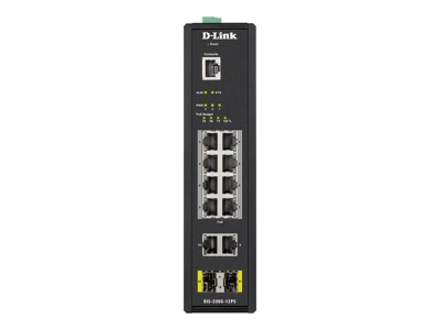 D-Link DIS 200G-12PS - Commutateur - Géré - 10 x 10/100/1000 (8 PoE+) + 2 x SFP - Montage sur rail DIN, fixation murale - PoE+ (240 W) - CA 120/230 V / CC 46 - 54 V