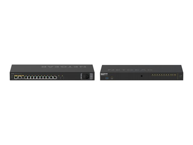 | Interfaces | 10 x 10/100/1000 Base-T RJ-45 8 ports (PoE+) 2 x 10GBase-X SFP+ 1 x gestion (Gigabit LAN) RJ-45 1 x console RJ-45 1 x USB Type A 1 x console (USB) Type C |